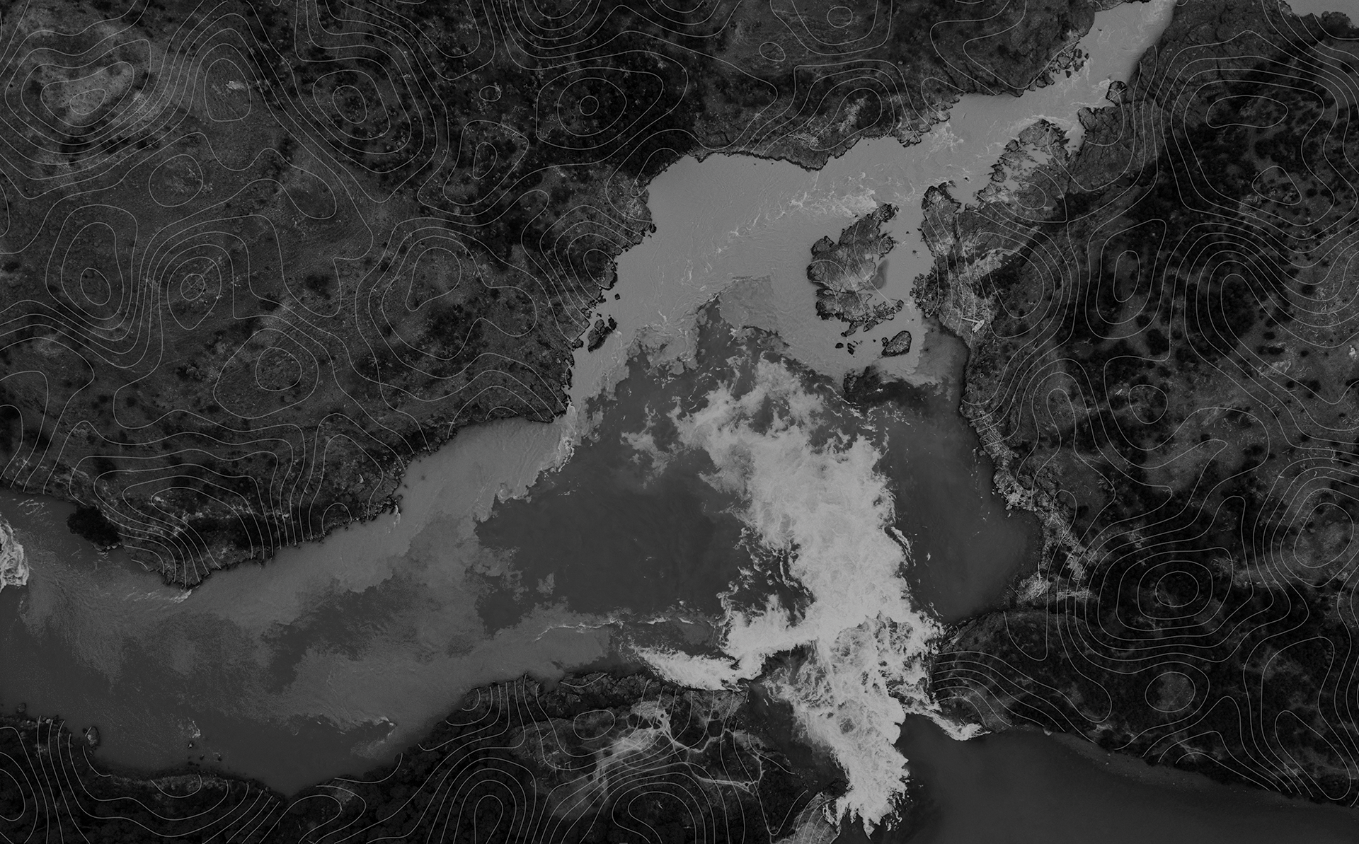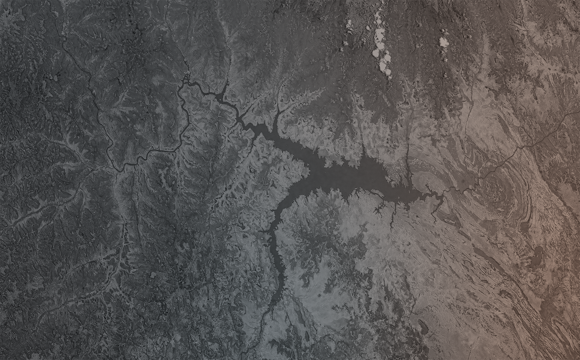Aerial imagery with gradient and topographic overlays as the product's complimentary imagery to Govini's brand identity.