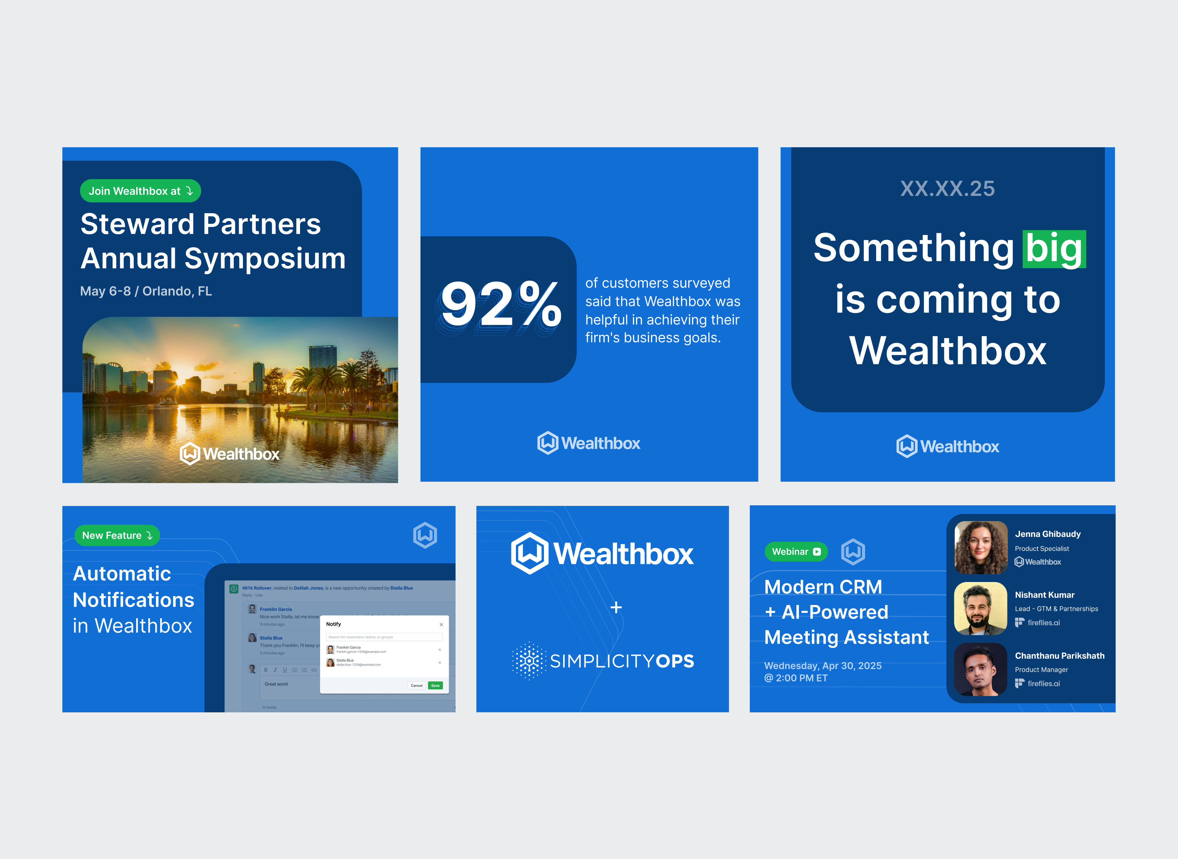 Developed a new LinkedIn social design system for Wealthbox to highlight a stronger, more cohesive brand identity. The updated look elevates their presence with a polished and professional style.